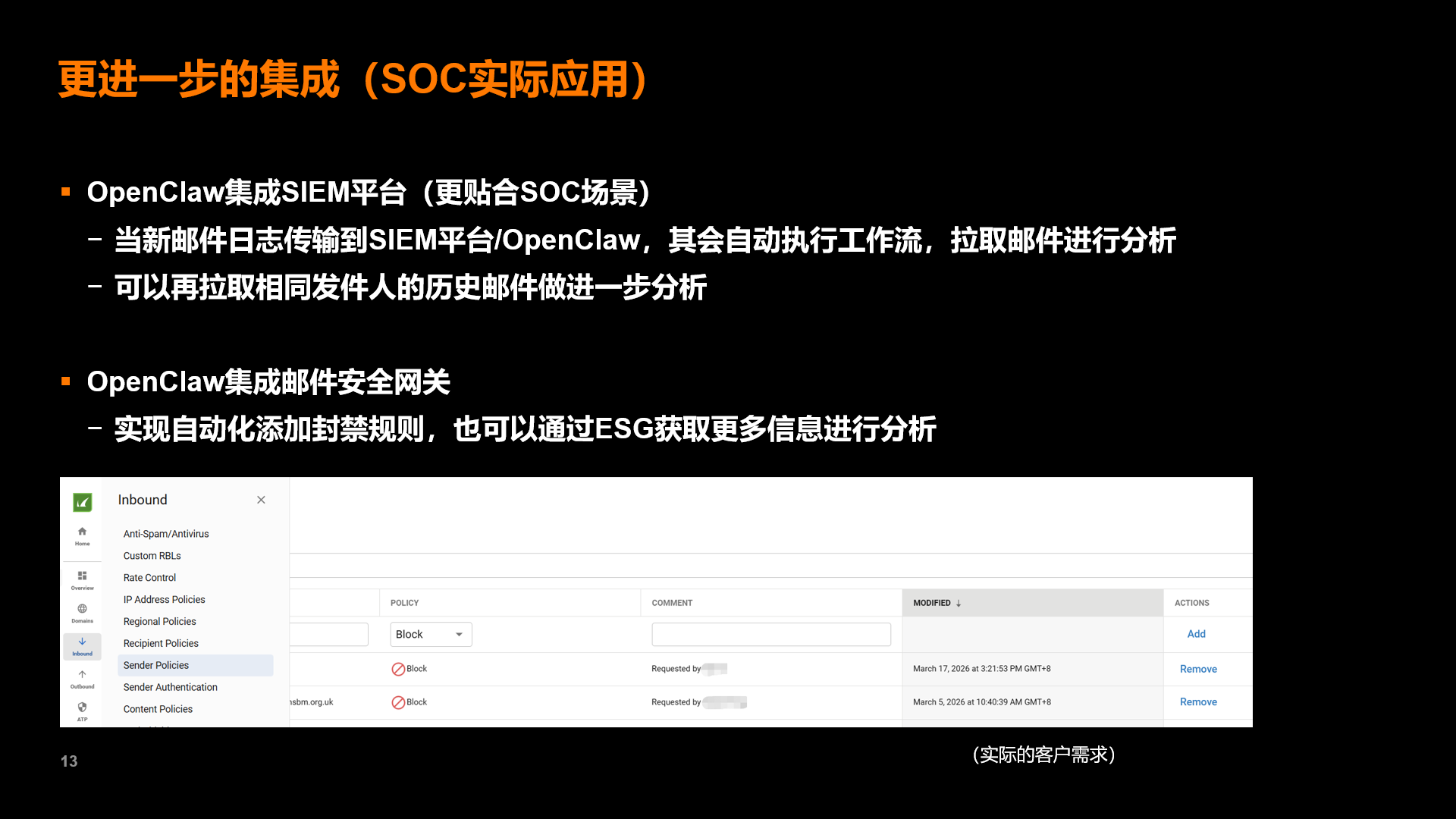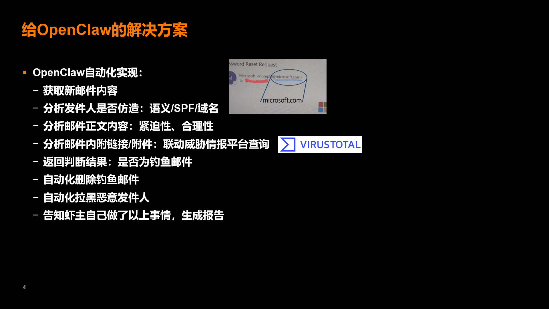 获取邮件内容、查VT等这些固定的操作其实完全可以用SOAR类似的自动化编排实现,没有必要引入AI Agent,在这里更贴切的点我认为是
